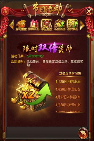 主界面“节日”图标,点击打开活动