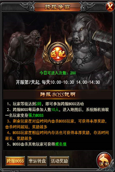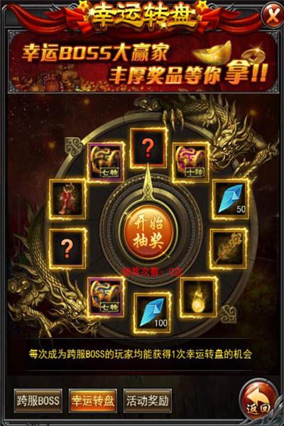 每次成为跨服boss玩家均能获得1次幸运转盘的机会。