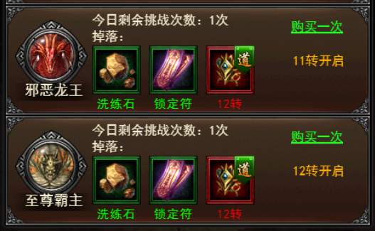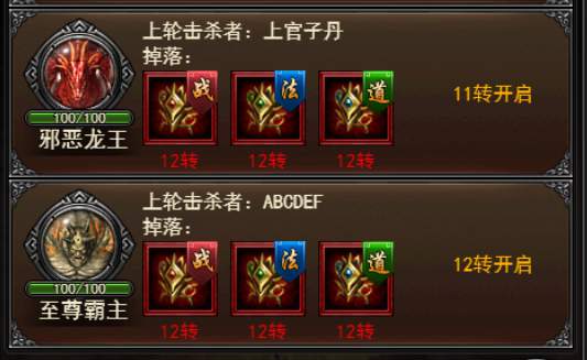 三、新增野外11、12转BOSS;个人11、12转BOSS