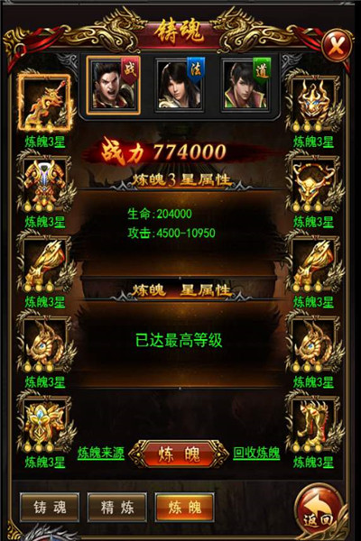 练魄入口-角色-铸魂-练魄,目前最高等级为3级