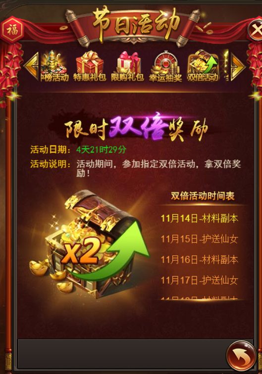 活动期间,会出现限时双倍奖励的活动哦,遇到赚到!