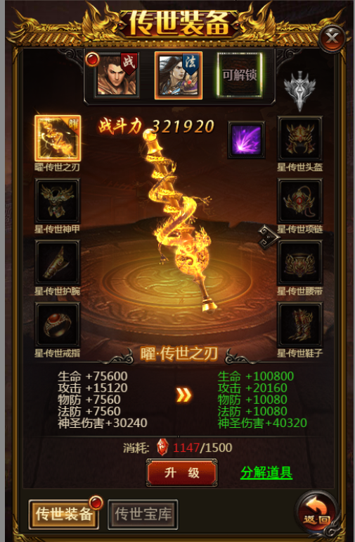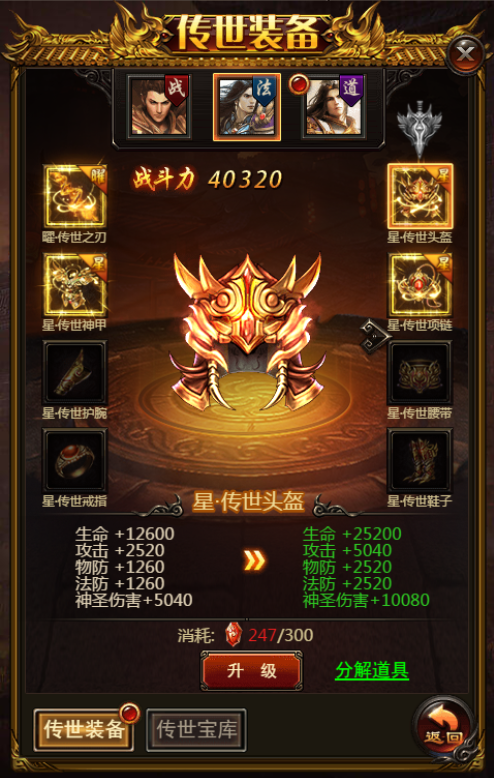 4. 使用传世宝钻可以升级传世装备