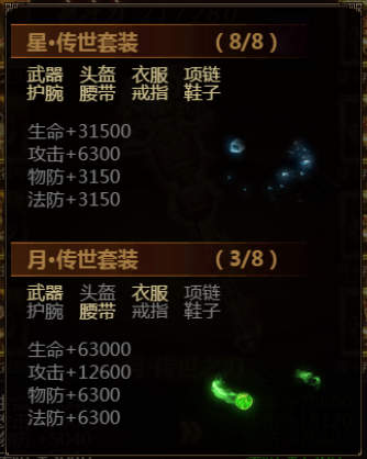 5. 集齐一整套对应的传世装备后,可激活套装属性,获得大量属性值及场景专属效果