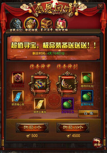 活动奖励:传奇装备,红品狂怒盒,感恩暖心卷,感恩至尊卷等等