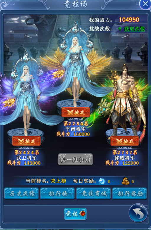 3:挑战胜利后可获得相对应的奖励已经挑战对手当前的排位名次。
