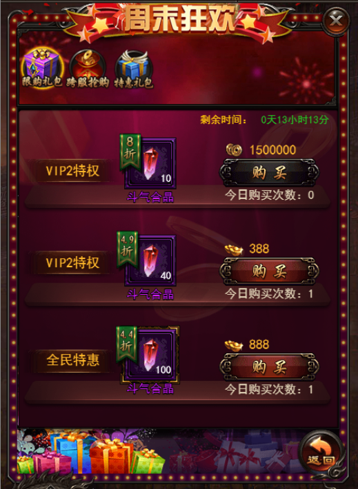 活动说明:活动期间推出特惠礼包,多款礼包选择,超额优惠等你领取。
