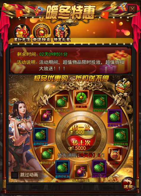 活动说明:活动期间,消耗一定元宝或者抽奖券,即可参与抽奖。