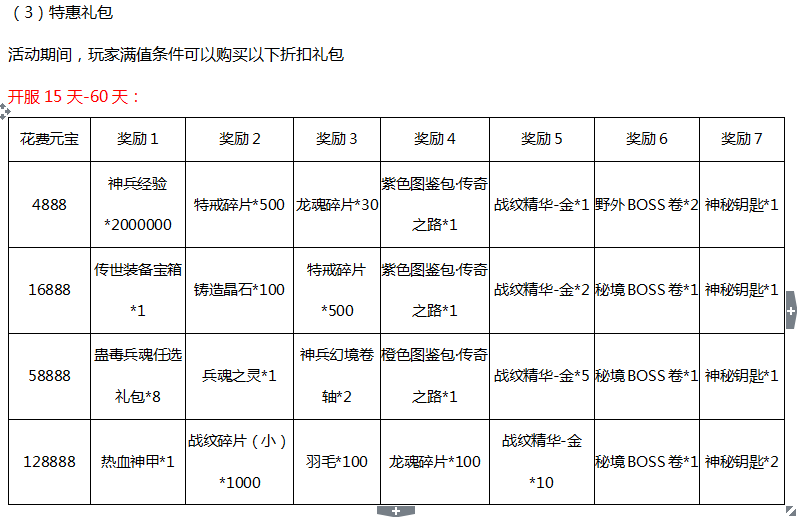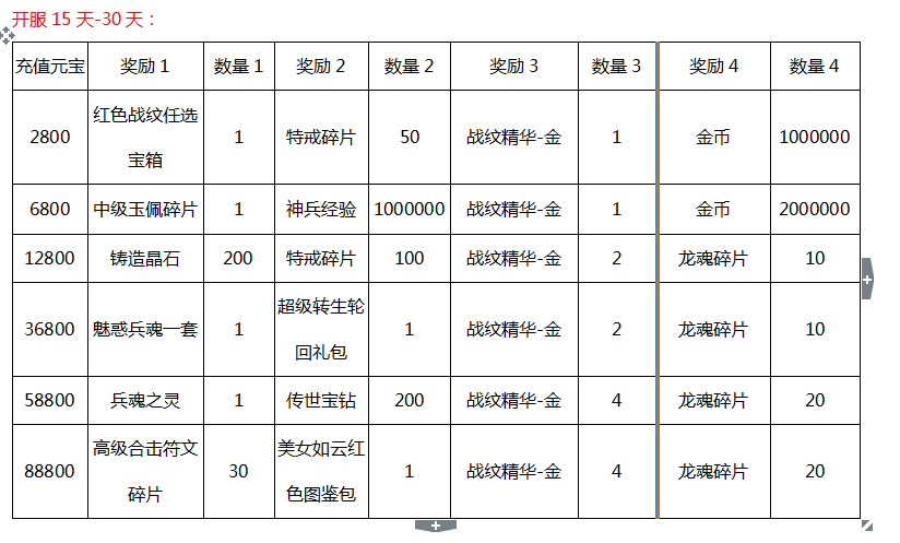 1,开启条件:开服十五天,并且不在合服活动期间的区服