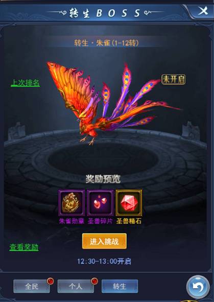 转生BOSS活动每天定时12:30-13:00开启。开启后持续30分钟,若结束时BOSS仍未被击杀,则将所有玩家踢出副本