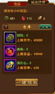 2.攻城略地城池每小时收益亦可获得铜钱。