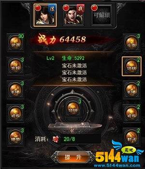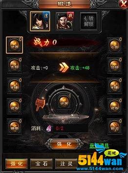 强化,是最简单的,它是在装备与首饰等各自部分上进行的强化,能帮助各个部分得到生命、攻击以及防御方面的属性提升。随着强化的递增,等级也逐步提高,强化后得到属性当然也更高,而需要的强化石也自然增多了。