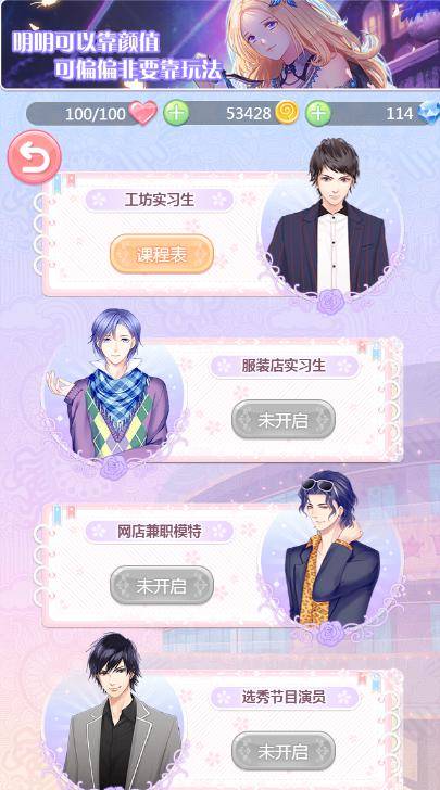最后是职业进阶,比如选秀节目演员,最后应该是可以晋升到大明星的。(估计游戏名字中的“梦”字就是指这个。)职业进阶条件大致有:金币、主线通过某个关卡、课程学习、某件服装等等(在商城购买,关卡掉落或是制作)。 在获得相应的进阶条件后就可以晋升了。